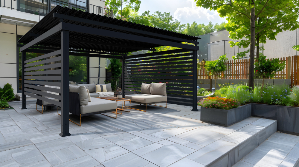 Standard colours include black, white, and grey, but Mr. Pergola can be made in almost any colour you can think of. Custom colours might take an extra 2–4 weeks for delivery.