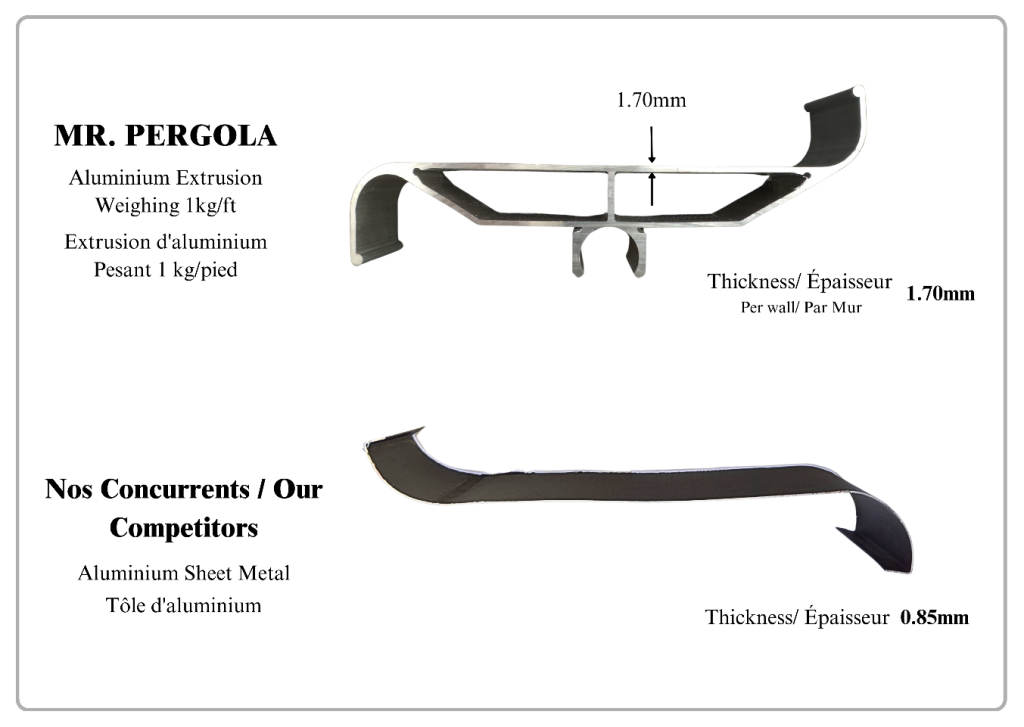 Mr. Pergola protection system is designed and manufactured in Montreal. Canadian aluminum and American steel add up to a durable and strong yet elegant canopy frame.